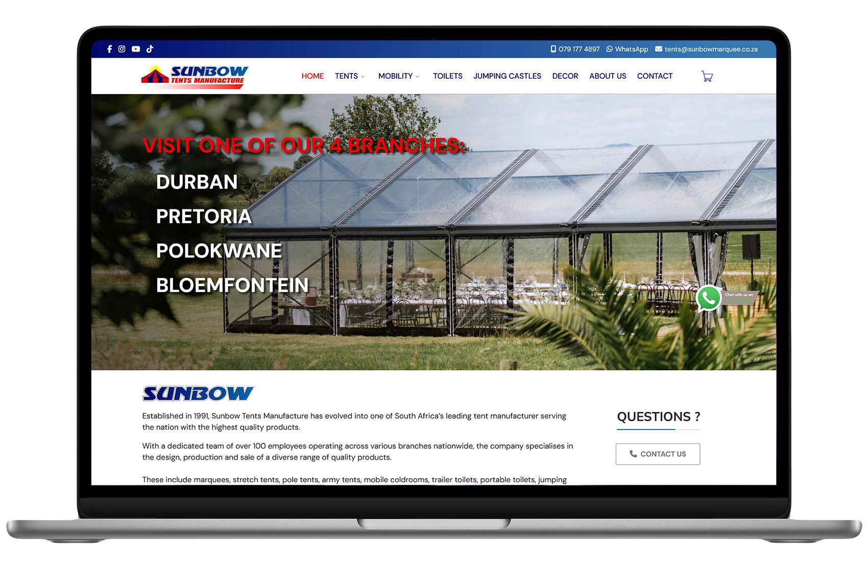 A quality eCommerce website and online store for an events tent, trailer, coldroom, toilet manufacturer and supplier that presents a professional interface, bolstering the company's credibility, instilling trust, raising brand awareness and attracting clients.